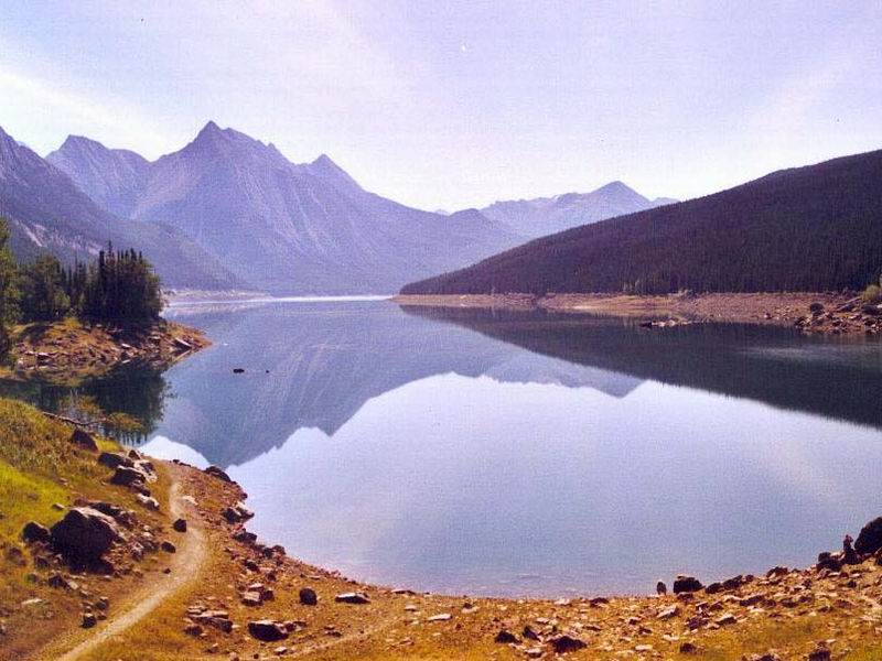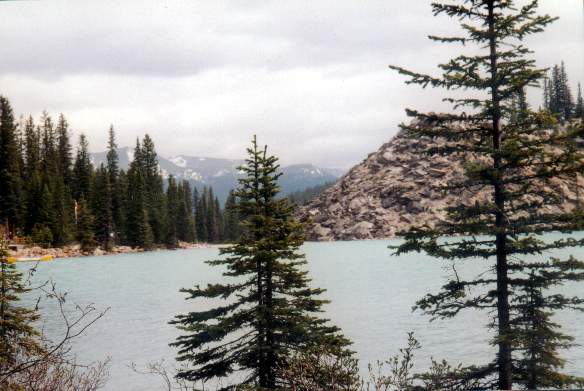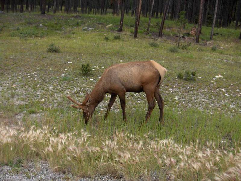 ! 15 Juin, au départ de Cache Creek, les montagnes sont plus arides, curiosité : nombreuses serres pour la culture du Ginseng, nous croisons aussi le TransCanadien, avec ses trains de plus d'un kilométre de long, chargés de minerais., nous nous dirigeons ves l'Alberta, de nouveau environnés de forêts et de lacs, des camions monstrueux chargés de troncs d'arbres nous impressionnent au passage. Nous passons aux pieds du superbe Mont Robson (3954m), et entrons dans la province de l'Alberta (heureuse surprise, tous les panneaux et annonces sont bilingues Français-Anglais). Escale à Jasper, très agréable centre touristique. 16 Juin, visite des environs de Jasper, nombreux animaux en liberté, au bord de la route,