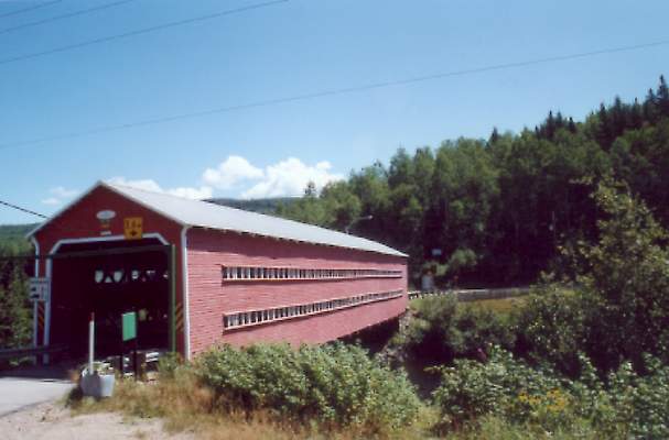 à un petit train solidement protégé...au passage, magnifique pont couvert sur la route de