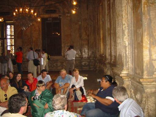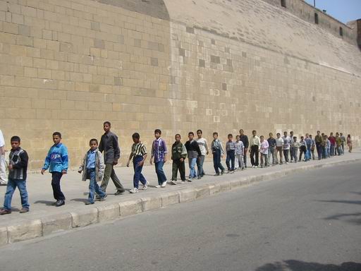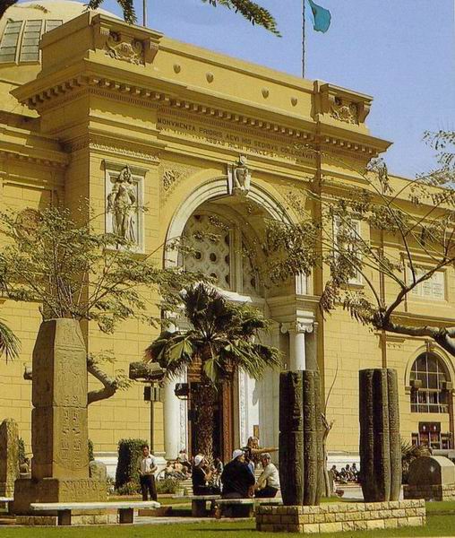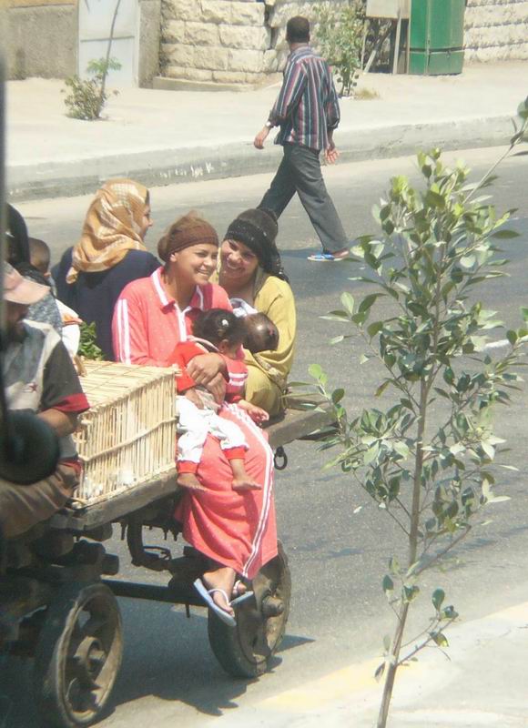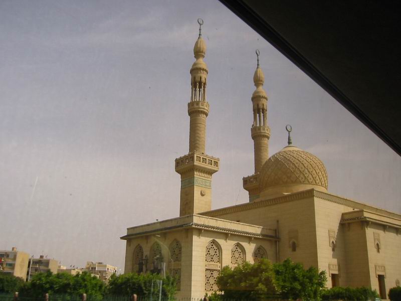 - Le 13 Avril - départ 7H00 pour la visite de la Citadelle, plantée sur les contreforts de la falaise de Moqattam, elle domine le Caire, elle est surtout remarquable par la présence de la superbe mosquée Mohamed Ali (l’emblème du Caire) qui ressemble beaucoup à Sainte-Sophie d’Istanbul (un dôme, plus quatre demi dômes, et deux minarets) vous visitons et avons droit à un remarquable exposé sur l’Islam et ses rites, ainsi que l’histoire de la mosquée, par notre guide (qui n’est pas musulmane). De la terrasse, la vue embrasse le Caire, gigantesque, mais la pollution enlève toute possibilité de vue lointaine ! les quartiers proches ont cet aspect de maisons non terminées, un peu choquant, chaotique, mais le Caire a aussi de très beaux quartiers, nous le verrons par la suite…nous nous rendons dans le quartier Copte (Misr el Qadima) avec ses ruelles étroites, nous visitons le couvent Saint Georges et l’église Saint Serge, les murs sont ornés de superbes icônes, beaucoup de ressemblance avec les églises orthodoxes, partout impression de calme et de sérénité. Dans ce quartier se trouve aussi la belle synagogue Ben Ezra, que nous visitons, nous sommes reçus, fort courtoisement, comme dans les églises coptes.. Il nous faut déjeuner, nous nous rendons au restaurant habituel, où la nourriture ne s’est pas améliorée ! et nous nous prenons à regretter les buffets opulents du bateau de des hôtels précédents. . L’après midi est consacré au Musée Egyptien, construit à l’initiative de l’égyptologue français Auguste Mariette. Appareil photos et caméscopes à la consigne ! Plus de 100.000 pièces s’entassent dans les deux étages du musée, une semaine ne suffirait pas à tout voir. C’est vraiment un magnifique musée, partout ce ne sont que statues, sarcophages, bijoux, mobilier etc. La collection de Toutankhamon est la plus importante, son trésor est époustouflant, en particulier le sarcophage d’or (450 livres d’or massif) d’autres collections : Akhenaton, Thoutmosis, des statues de Ramsès II. Dans un tout autre genre, la salle des momies est particulièrement impressionnante ! quantité d’autres salles consacrées à la bibliothèque, aux papyrus, manuscrits…hélas nous manquons de temps…Nous devons rentrer au milieu du trafic toujours aussi débridé, où se côtoient, voiture, bus, camions et charrettes à ânes (pauvre petit âne égyptien, tirant souvent des charges énormes, vaillant à la tache) au milieu du bruit incessant des klaxons (en l’occurrence complètement inutiles) et des gaz d’échappement !