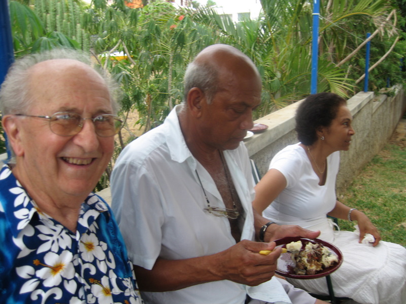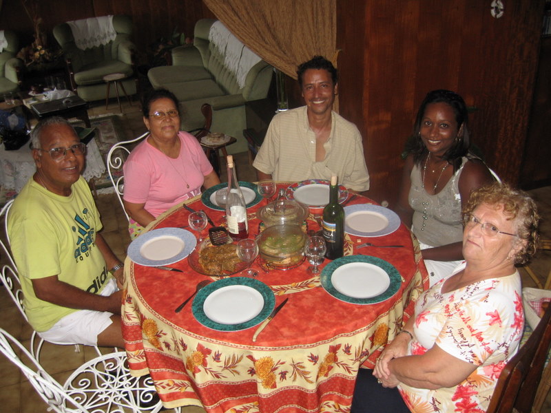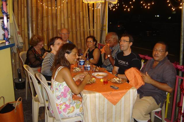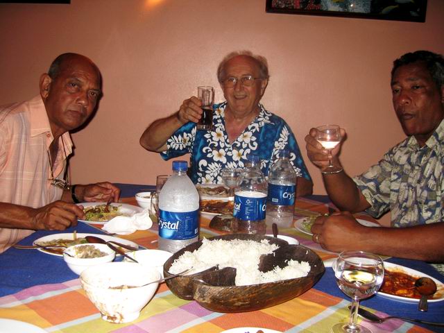 ![]() ![]() Nous prions nos visiteurs d’excuser le caractère « un peu personnel » de cette page, qui contrairement aux autres pages « voyages » aborde un aspect plus intime, de nos relations avec nos amis mauriciens, qui n’intéresse sans doute pas tous les visiteurs, mais reflète le niveau des relations que l’on peut nouer dans cette île incomparable et ses merveilleux habitants.! Ce séjour du 31 décembre 2006 au 31 janvier 2007 fut surtout consacré à des rencontres amicales, fortes et chaleureuses ! sans négliger bien entendu les beautés de l’île, que nous revoyons toujours avec plaisir. L’ île Maurice est devenue pour nous une seconde patrie.. Nous sommes partis de Roissy le 30 Décembre par le vol de nuit d’Air Mauritius, (notre petite fille Rose était venue nous dire au revoir !) vol sans problèmes comme toujours, mais à l’arrivée, surprise, deux valises étaient manquantes, ce qui est fort contrariant pour la suite du séjour, malgré les assurances et les amabilités du personnel de l’aéroport. Accueillis chaleureusement par notre cher Sydney, nous retrouvons de suite nos repères, le paysage, la route, tout nous est familier ! Nous rejoignons Belle Etoile, où l’accueil affectueux de Denise nous réconforte ! nous faisons partie de la famille ! Le temps est beau, et la température avoisine 30°, autre source de réconfort… L’après midi nous avons tous rejoint Pereybère, pour retrouver nos bons amis Françoise et Fernand, ainsi que leurs enfants Vincent et Claire, avec qui nous séjournerons quelques jours. Pour bien terminer l’année 2006, nous passerons le réveillon avec les enfants de Denise et Sydney, Hélène et Didier, Pat, et leurs petites filles Jade et Anouchka. Réveillon super sympa au « Restaurant du Pêcheur » à Pereybere, excellent rapport qualité/prix, en particulier les gambas et langoustes grillées à volonté ! et nous pouvions amener nos vins. Apéritif sur la plage avec les danseurs de séga, qui par la suite animèrent toute la soirée. Le Jour de l’An, les festivités continuèrent à Grand Baie, chez Hélène et Didier. Contrariés par la perte de nos deux valises, nous n’avons repris vraiment le sourire qu’à l’arrivée de ces dernières livrées par les soins d’Air Mauritius !! Nous nous sommes ensuite organisés avec Françoise et Fernand, pour les quelques jours que nous passerons ensemble, courses à Pereybere, sans oublier la plage arrivée à saturation à cette époque de l’année, où tous les mauriciens sont en congé, mais bien agréable quand même ! Sortie en bus vers Cap Malheureux, un de nos endroits de prédilection, avec l'incomparable point de vue vers le Coin de Mire, la sympathique plage de Bainboeuf et la merveilleuse petite église en bord de mer. Par la suite, nous avons organisé une grande sortie en taxi pour visiter le sud de l’île, (à six c’est une formule très intéressante, pour qui, n’a pas de véhicule) ; nous avons fait connaissance avec Dolane, un merveilleux guide et conducteur, sympathique garçon qui nous a accompagné toute la journée. Visite tout d’abord du musée de « l’Aventure du Sucre » que nous n’avions pas encore visité ! musée installé sur l’ancienne sucrerie de « Beau Plan », au milieu de la machinerie, très belle réalisation, l’histoire de Maurice et du sucre est très bien présentée ! Une visite incontournable ! Ensuite direction le Sud, Dolane nous arrête à une grotte sur le bord de la route, dans un champ de cannes à sucre, aux environs de Casela, que nous ne connaissions pas, phénomène naturel très surprenant, et pas du tout mis en valeur, à part un petit autel catholique installé en ce curieux endroit ! A Tamarin hélas, les salines sont sans activité, nous visitons Flic en Flac et déjeunons chez Ah Youn, excellent rapport qualité prix, le nombre de clients en est l’illustration ! Nous allons ensuite visiter Casela, très belle collection d’oiseaux, dans un très beau cadre de verdure, hélas la présence d’énormes cages, n’est pas très propice à la photo ! mais le jardin est très beau et reposant. Le 5 Janvier, hélas Françoise et Fernand doivent rentrer en France, nous devons nous quitter. Dolane les accompagne à l’aéroport et nous nous séparons avec tristesse de ces merveilleux amis. Nous partons nous installer à Beau Bassin chez Denise et Sydney, où nous allons passer de bons moments avec eux comme les années précédentes ! disposant de notre propre appartement et prenant nos repas en famille, les sorties se faisant également en leur compagnie ! Partageant leurs soucis et leurs joies ! Merci chers amis ! Nous visitons les marchés environnants, « Quatre Bornes », « Mahébourg » où nous passons la journée, marché très typique, et bien achalandé...avec un repas dans un restaurant chinois très correct. Nous allons régulièrement aussi faire nos courses et déjeuner en plein air, au centre commercial de « Shoprite », souvent animé par un excellent chanteur. Le Caudant, ce magnifique "front de mer" de Port Louis, nous a vu plusieurs fois, parcourir ses boutiques et ses petits "snacks" sympas. Sortie avec Sydney dans un cadre magnifique et parfaitement inconnu des touristes, d’une retenue d’eau, aux environs de Bel Air, nature sauvage à l'état pur, avec notamment une curiosité : un verger de mallaks, (orthographe non garantie !) avec des arbres couverts de gros fruits rouges pas très connus, sauf des familles mauriciennes. Nous avons été invité au restaurant à Phoenix par nos bons amis Suzanne et Ahfat, et nous avons passé de très bons moments en compagnie de deux autres couples franco/mauriciens. Toujours en compagnie de Sydney et Denise, à Baie du Tombeau, nous avons rendu visite à Dolane, notre gentil conducteur de taxi, qui était heureux de nous présenter sa famille Carine son épouse, et ses petites filles Noémie et Maeva. Une merveilleuse fami