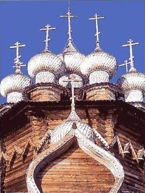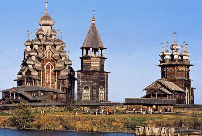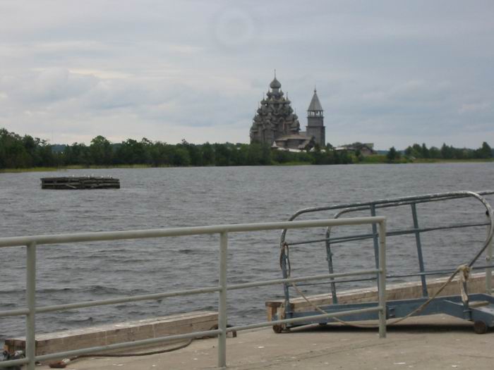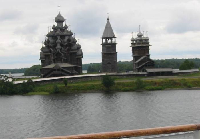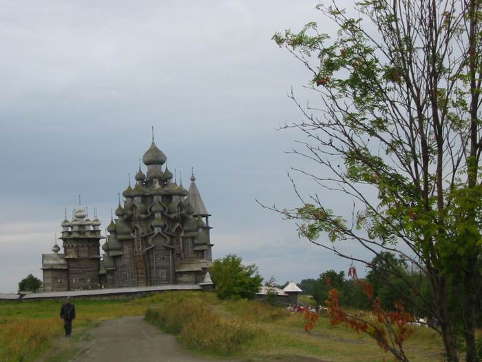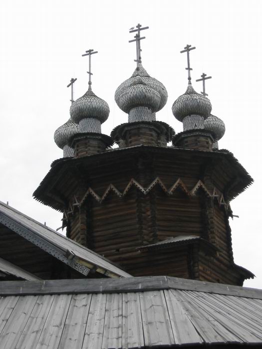lames en écailles, faites de bois de tremble (bois très répandu en Carélie) elles changent de couleur, avec le temps. Le plus souvent argenté sous le ciel gris. « La cathédrale de la Transfiguration » est surmontée de 22 bulbes, la plus grosse construction, ne se visite pas, car elle est en rénovation. Après