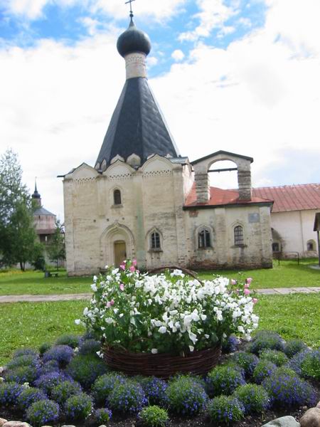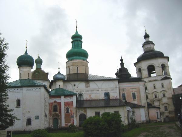 A Goritsy, peu de chose à voir, (sinon de nombreuses boutiques pour les touristes) on nous conduit en bus par une route panoramique au but de notre excursion : Kirilov et « le Monastère de St-Cyrille du Lac Blanc »…impressionnant ensemble au bord du lac de Siverskoie, ( la légende dit que celui qui se baigne dans ce lac, rajeunit de dix ans ? nous n’avons pas essayé ! peut être à tort ?). Ce