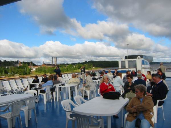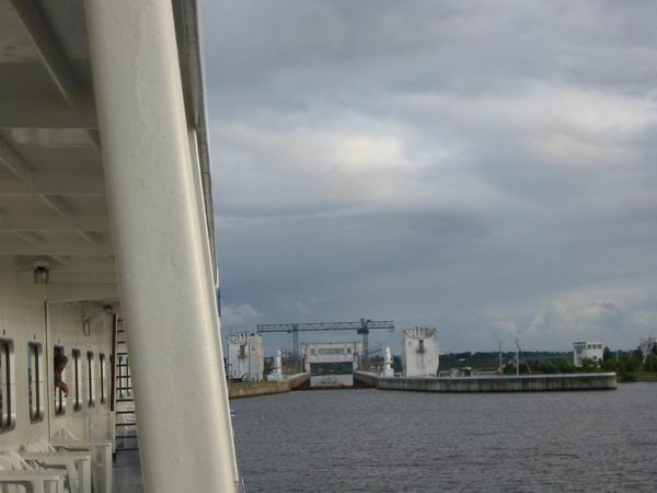 - Le « Dimitri Fourmanov » reprend sa navigation, cap au Sud, vers le canal Volga-Baltique, reçus par l'Officier en second, nous avons droit à une visite de la passerelle, extrémement bien équipée, (radars, sondeurs) de