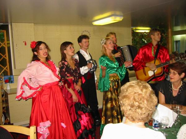 Ce soir, « Soirée Anniversaire », animée par le groupe "Voronej", pour tous les natifs du mois d’Août ! chacun reçoit un souvenir et nous dinons au Champagne Français, merci Mondotours...! |