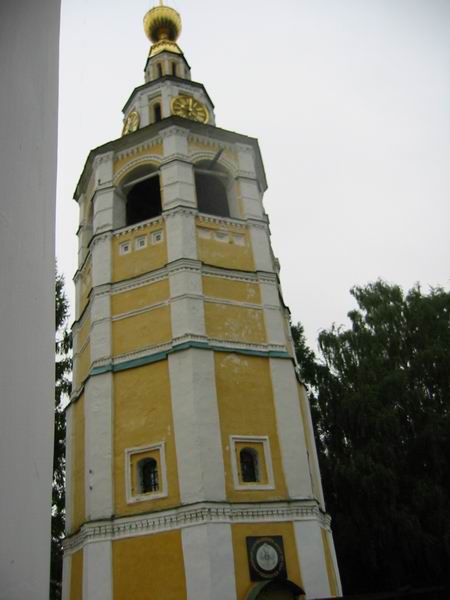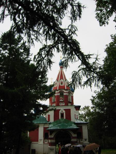 Capela par quatre moines… ensuite nous enchainons par « l'église St Dimitri sur le Sang », ou fut assassiné le tsarévitch Dimitri (10 ans) en 1591, probablement sur l’ordre du Tsar Boris Godounov…pour étouffer l’affaire, beaucoup d’habitants furent déportés en Sibérie, et, anecdote ahurissante, la cloche ayant annoncé la mort du Tsarévitch, fut déportée elle aussi, en
