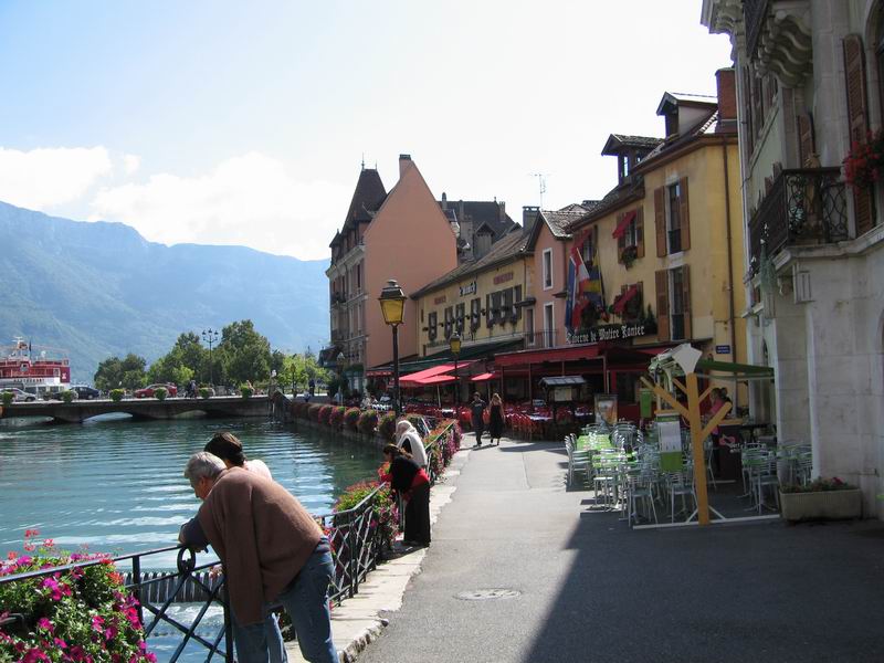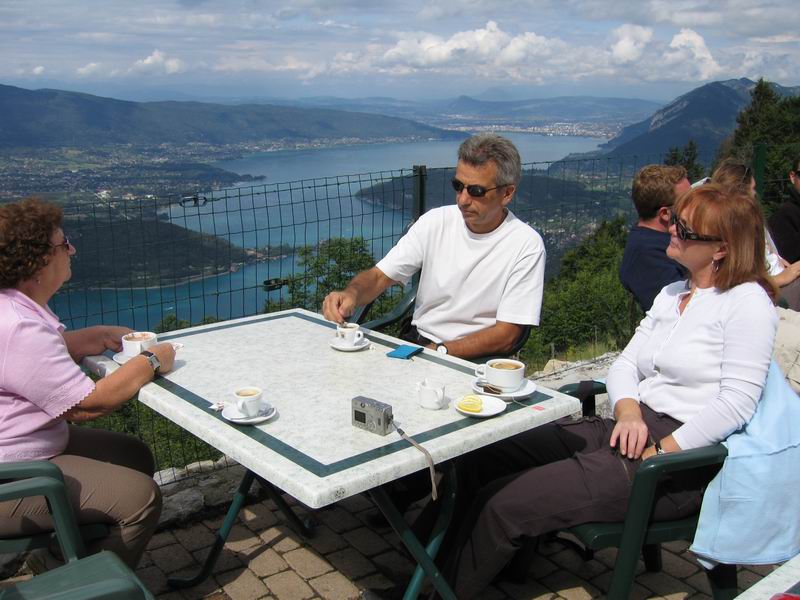 Nos enfants Catherine et Joêl sont à Annecy depuis un an, leur rendre visite est un grand plaisir !....c'est aussi une belle occasion de visiter la Savoie, cette belle région de montagnes !..... Notre première sortie fut pour la très belle excursion au col de la Forclaz-Montmin (1157m) qui domine superbement le lac d'ANNECY, lieu de prédilection pour les pratiquants du "parapente", la vue sur le lac est extraordinaire ! nous avons déjeuné, dans un cadre très agréable, et pris le chemin du retour en empruntant la route panoramique du bord du lac. pour nous rendre au port de Saint Jorioz, charmante localité au sud de Sevrier et d'Annecy, où est amarré le bateau de nos enfants...le temps n'était pas très beau, mais propice à la navigation, nos enfants nous ont fait faire le tour du lac. Très agréable promenade durant deux heures, toutes les charmantes localités bordant le plan d'eau ont défilé devant nos yeux admiratifs, Duingt, Talloires, Menthon-St-Bernard, Le Veyrier-du-Lac, avec leurs superbes chalets à flanc de montagne, ensuite Annecy, Sevrier. et Saint-Jorioz... le lendemain, Dimanche nous avons fait l'excursion à la montagne dominant Saint-Jorioz, le Semnoz, qui culmine à 1699 m au Crêt de Châtillon, très belle route au milieu d'alpages et de forêts verdoyantes en passant par de charmants villages fleuris et le col de Leschaud ... Joêl nous a accompagné en vélo, c'est une route se pretant particuliérement à l'entrainement! la pente est assez rude, mais la montée est régulière. Au sommet du Semnoz, on trouve quelques hôtels et une station de ski très fréquentée l'hiver, malheureusement l'horizon est un peu bouché, et nous n'avons pu jouir du magnifique panorama, allant jusqu'au Mont-Blanc. La route qui redescend directement sur Annecy est plus facile..nous préférons revenir par le col de Leschaud, et profiter des superbes vues sur le lac, en particulier en arrivant sur les hauts de St-Jorioz Lundi, excursion avec les enfants, en direction de Megève, en passant par Faverges, Serraval et le col de la Croix-Fry. (1427m). superbes petites routes tranquilles, ensuite passage à la Clusaz, cette belle station de sports d'hiver, , montée du col des Aravis (1500m), un peu plus chargé en circulation, mais facile... halte devant la chapelle, au milieu des alpages. et descente vers Flumet, Praz sur Arly et Megève..cette très célèbre station, mèrite un détour, sans doute un peu trop luxueuse à notre gout, mais très bien tenue et coquette. Nous explorons les différentes vallées adjacentes, garnies de chalets tous plus luxueux les uns que les autres, le top du top c'est de faire un chalet moderne et de l'habiller avec des parements de vieux chalets ! les "Emirs" sont arrivés ! les prix de l'immobilier flambent ! 2millions d'Euros un chalet çà donne à réféchir..Nous reprenons la route du retour par Flumet et saint Nicolas la Chapelle, (charmant village savoyard) pour rendre visite à nos amis Aline et Christophe, absents malheureusement...nous continuons par les gorges de l'Arly, route coupée, comme c'est souvent le cas, nous devons passer par Héry et Ugines. pour rejoindre Annecy... Mardi, nous avons visité la ville d'Annecy, très belle ville, magnifiquement située au bord du lac du même nom. Nous avons surtout visité la partie ancienne, dite le "vieil Annecy", très pittoresque, avec le canal du Thiou, qui donne à la ville un air de Venise, bordé de vieilles maisons fleuries, en particulier vers le palais de l'Isle et le Chateau d'Annecy l'ensemble est superbe nous avons eu la chance de pouvoir visiter le marché, qui se tient sur un vieux pont, très typique, avec ses produits du terroir (fromages, charcuterie etc;). De nombreux vieux magasins se nichent sous les arcades,(herboristerie, chapellerie etc;); C'est vraiment une promenande extrémement agréable. Nous conduisons Joêl à l'aéroport en soirée, nous avons pu observer, les nombreuses routes et autoroutes qui permettent de bien desservir la ville vers Chambery, Lyon, Genève ou Chamonix, par contre la rocade menant de l'autoroute aux bords du Lac vers Sevrier est sursaturée, quand l'on vient de Chambery, mieux vaut passer par Albertville et le sud du lac.Un bon point également, la très belle piste cyclable, qui conduit d'Annecy aux portes d'Ugines. Mercredi, excursion vers Chamonix par Thones , La Clusaz et le Col des Aravis, ensuite Flumet, Megève, arrêt à Combloux pour déjeuner devant le panorama exceptionnel sur le massif du Mont-Blanc, nous continuons par St-Gervais, les Houches et Chamonix, la circulation est très dense vers le Tunnel du Mont-Blanc, de trop nombreux camions polluent cette superbe vallée. Nous nous arrêtons au niveau du glacier des Bossons, pour une halte-photo , ce magnifique glacier, a bien diminué depuis notre dernier passage (qui date de trente ans!) victime de la fonte générale des glaciers ! il a reculé apparemment de plusieurs centaines de mètres, dommage ! Nous prenons le chemin du retour vers Megève et Flumet, avec une halte sympa à Saint Nicolas de la Chapelle chez nos amis Aline et Christophe, qui tiennent un gentil petit hôtel, (que nous vous recommandons, (lien et photo de l'hotel du Vivier en bas de page) bien situé, leur établissement est extrémement bien tenu, bien équipé, sympathique et accueillant, une bonne adresse pour les vacances..Retour par les gorges de l'Arly, Héry et Ugines. Jeudi, nouvelle balade au Semnoz, le temps est meilleur, les vues exceptionnelles sur les montagnes environnantes et le massif du Mont Blanc, retour par Annecy au milieu d'une belle forêt, en traversant tout le massif du Semnoz. Vendredi, le temps est au beau, nous attaquons une grande excursion vers Chamonix, que nous rejoignons rapidement par l'autoroute, avec Catherine et Joêl. Avec différents objectifs, selon le temps disponible et la circulation : téléférique du Brévent, col du Grand St Bernard, finalement ce sera